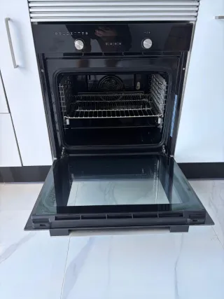 Horno Balay con acabado en cristal negro con 3 años de uso. - Diseño moderno y elegante. - Puerta abatible para fácil acceso. - Interior espacioso con rejillas. - Función de limpieza por aqualisis.