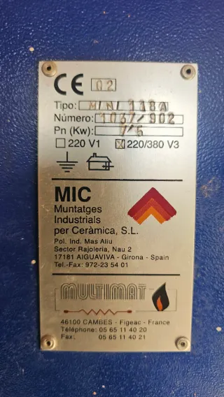 Horno eléctrico para cerámica marca MIC, modelo MINI 118 A. - Temperatura Máxima: 1260ºC - 1300ºC - Potencia: 7,5 kW - Alimentación: Trifásica y monofásica (220/380 V3) - Aislamiento: Ladrillo refractario de baja densidad K23/K26 - Programador eléctrico - Fabricacion nacional - Poco uso -Se incluye diferencial para la instalación eléctrica - SE INCLUYE SOPORTE Y PLACAS INTERIORES CERAMICAS Dimensiones Interiores (Estimadas) Ancho: 45 cm - 46 cm Fondo: 45 cm - 46 cm Alto: 57 cm - 60 cm Posibilidad de entrega a domicilio en Catalunya Precio negociable PALABRAS CLAVE NO LEER #hornoceramica #ceramica #alfareria #pottery