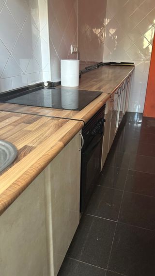 Se vende cocina completa con electrodomésticos de la marca Balay. Mobiliario de madera y encimera. - Muebles de cocina de madera. - Encimera. - Horno Balay. - Microondas Balay. - Frigorífico Balay. - Campana extractora.