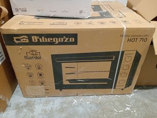 Horno electrico de conveccion. Marca Ollas GM En su caja, contiene las instrucciones En perfecto estado, usado una vez Capacidad de 19 litros. Viene con los accesorios que se ven en la última foto, que son una parrilla y unas pinzas.