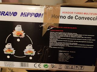 Horno de convección Bravo Nippon, modelo HT-D11, en perfecto estado. Es un horno multifunción, ideal para asar, tostar, freír y gratinar. - Incluye accesorios adicionales. - Interruptor automático on/off en la tapa. - Cocina de forma sana y ligera, con bajo consumo.