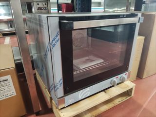 Se vende horno de convección marca FM nuevo a estrenar. Capacidad 4 parrillas de 48x34cm. Potencia 3100W. Tensión 230V. Luz interior. Alarma fin de ciclo. Temporizador y modo continuo. . . . Oferta 690€ + IVA . . . . .. Posibilidad de enviar.