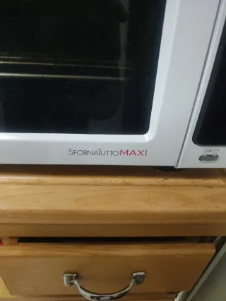 Vendo horno de sobremesa porque voy a poner uno encastrado, integrado en el mobiliario de cocina por lo que este ya no me servirá. Tiene muy poco uso. Tiene marcas de uso en los elementos decorativos del plástico que no afectan a su función. - Marca: Delonghi - Tipo: Horno de sobremesa - Color: Blanco y negro. - Cocina perfectamente todo tipo de alimentos con el termostato ajustable de 80 °C a 220 °C. - Funciones de cocción: hornear, grill, mantener caliente, gratinar y asador. - 32 litros de capacidad. - Cuerpo de metal negro con interruptores multifuncionales fáciles de usar. 💥 Estamos de mudanza, más artículos en mi perfil‼️