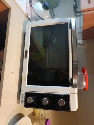 Vendo horno de sobremesa de la marca De'Longhi. El aparato funciona bien y está en buen estado tanto por fuera como por dentro. Es una excelente opción para cualquier cocina por su calidad y durabilidad. Estado: Buen estado.Horno eléctrico de sobremesa De'Longhi Sfornattutto.