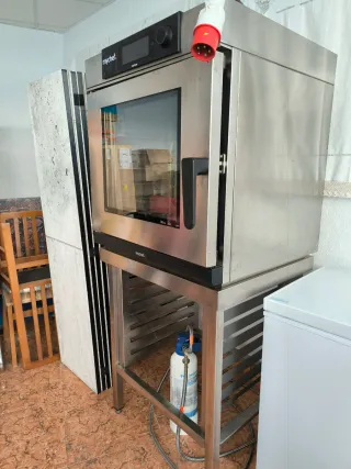 Horno profesional Mychef Distform Evolution 6GN de acero inoxidable. Ideal para hostelería. Poco uso y solo en programas de vapor/baja temperatura. Autolimpieza, programable, conectividad con app, etc: supercompleto! - Modelo 61LTITAI del año 2019. - Electrico 10.700 W. - 400 V trifásica. - Gomas en muy buen estado. - Incluyo mesa de acero inox, bandejas GN, descalcificador, etc. - Con factura de compra en 2019 por más de 9k y facturas de sus revisiones al dia. - Signos de uso y desgaste mínimos. - Venta por cierre de restaurante. - Podría transportarlo al destino si hay trato.