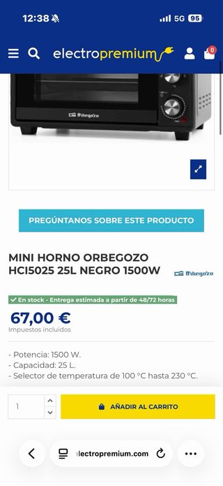 ✨ Horno eléctrico de sobremesa Cecotec Bake&Toast 1090 Black, nuevo a estrenar. No se ha utilizado nunca. Incluye caja original, accesorios e instrucciones (ver fotos). 🔥 Ideal para cocinas pequeñas, pisos, estudios u oficinas. 🔌 Características: • Capacidad: 10 litros • Potencia: 1000 W • Temperatura regulable hasta 230 °C • Temporizador hasta 60 min • Diseño compacto y elegante • Puerta de cristal con indicador luminoso 🍕 Perfecto para pizzas, tostadas, carnes, verduras y repostería. 🆕 Estado: nuevo, sin uso. 📍 Entrega en Barcelona Poblenou o envío seguro por Wallapop 🔎 Tags: horno sobremesa, horno eléctrico