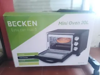 Horno eléctrico de sobremesa Becken de 20 litros. Ideal para preparar tus comidas favoritas. - Puerta de doble cristal. - 4 funciones. - Diseño compacto.
