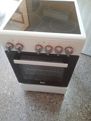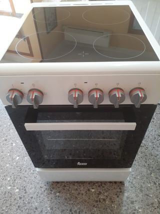 Cocina eléctrica con vitrocerámica de la marca Teka. Cuenta con cuatro zonas de cocción y horno. - Encimera de vitrocerámica. - Cuatro zonas de calor. - Horno integrado. - Mandos frontales. - Diseño moderno en color blanco. Está prácticamente nueva, solo 3 meses de uso por cambio de vivienda.