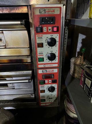 Horno de pizza eléctrico de la marca Zanolli. - Panel de control con pantalla digital. - Mandos giratorios para ajuste de temperatura y tiempo. - Indicadores luminosos de estado. horno de pizza eléctrico de dos pisos Zanolli Citizen PW 9+9 MC. Es un horno de alta potencia de fabricación italiana, construido en acero inoxidable para uso comercial.