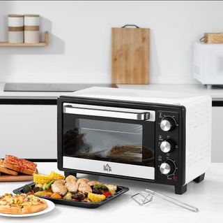 Horno Portátil 16L 1400W con 3 Modos de Calor Temporizador Bandeja de Horneado y Rejilla 44x32x28,1 cm Blanco y Negro. Con este horno eléctrico pequeño puedes cocinar en 3 modos diferentes: solo por la parte superior, por parte inferior o por ambos a la vez.Cuenta con 1 rejilla y 1 bandeja con asa para hornear y preparar deliciosas comidas. 1 asa de bandeja proporciona mucha comodidad.