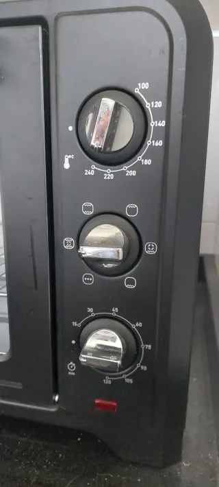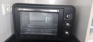 Horno eléctrico Moulinex usado pero en buen estado y funciona sin problemas. Mide 48x35x29cm. Tiene temporizador, bandeja, rejila y manual original. Lo vendo así de barato porque me urge liberar un trastero. Se entrega en Santander.