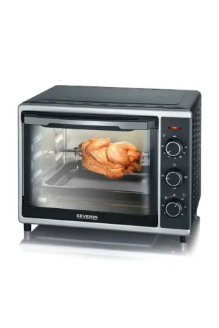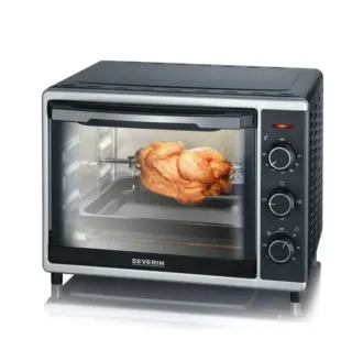 SEVERIN Horno tostador con función de convección, mini horno tostador con grill y recogemigas, horno pequeño con 1 bandeja de asado y asador giratorio, 1600 W, 30 L, negro, TO 2056 Marca Severin Color Negro Dimensiones del producto 40f. x 45,3an. x 34,5al. centímetros Capacidad 3E+1 Litros Función especialFunción de barbacoa, Pincho giratorio, Temporizador Vataje 1600 vatios Compacto y versátil – Gracias a sus 30 litros de capacidad, este horno tostador de sobremesa con puerta abatible permite hornear desde pizzas hasta patatas fritas y pasteles. Múltiples accesorios – El horno tostador eléctrico incluye un asador giratorio, un rec