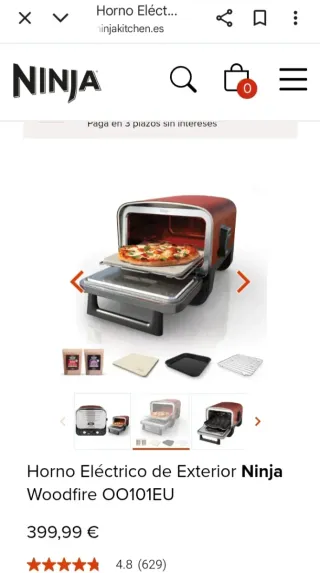 Ninja Woodfire horno eléctrico de exterior 8 en 1, horno para pizza, asador a alta temperatura y ahumador con rejilla, bandeja Pro-Heat y otros accesorios, 6 ajustes para pizza, naranja, OO101EU Marca Ninja Color Naranja Dimensiones del producto 51f. x 57an. x 41al. centímetros Vataje 2400 vatios Material Piedra