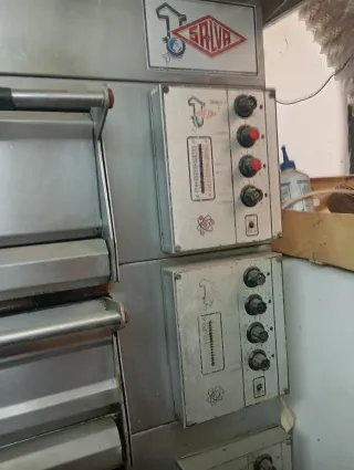 Horno eléctrico profesional de tres pisos con conexión a 400V. - Marca: Salva - Tres niveles de cocción independientes. - Panel de control con termómetros y selectores. - Construcción robusta en acero inoxidable.