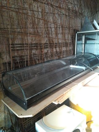 Particular vendo individualmente material de hostelería : 1 vitrina expositora para las pastas ( nueva ) 1 vitrina expositora para las tapas marca Saly ( nueva )1 chocolatera marca Fairy ( nueva ) 1 campana extractora de inox tipo doméstico, 4 extintores, 1 barbacoa eléctrica adaptada, 1 nevera Infrico dos puertas ( para reparar, falta gas ) 1 botellero de cuatro marca Infrico, 1 horno Teka, 28 sillas interior, 15 sillas de aluminio, 3 mesas redondas inox., 4 mesas grandes cuadradas de inox., 1 mesa alta redonda inox. con base negra ( nueva ) 7 mesas, 11 taburetes inox. con base negra, copas, platos, paellas, etc.Precio a negociar.