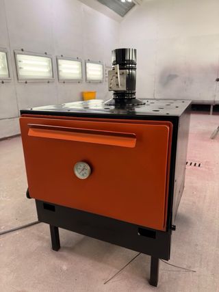 Horno Josper de carbón, ideal para hostelería. - Diseño robusto y profesional. - Puerta con termómetro integrado. - Acabado exterior en naranja y negro.