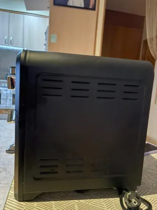 En muy buen estado, con marcas de uso normal en la cocina, ningun desperfecto que afecte a la funcionalidad. Cocción rápida y homogénea, 6 modos, temperatura hasta 240 °C y temporizador mecánico hasta 2 h. Fácil de usar. Incluye rejilla y bandeja. Color negro, diseño compacto. 📏 Medidas: 37 alto × 50 ancho × 34 fondo ⚡ Potencia: 2000 W 📦 Modelo: Moulinex 030-B / OX484810