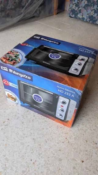 Horno eléctrico Orbegozo de 48 litros, completamente sin usar. Conserva la garantía original de 3 años. Lo vendo porque lo compré y no me cabía, pero como rompí la caja no me lo dejan devolver. - Capacidad: 48L - Estado: Nuevo, sin uso - Garantía: 3 años