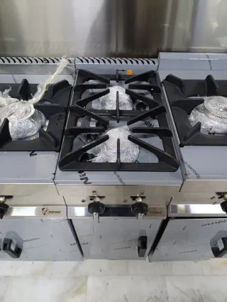 ☎️611 648 711☎️ 📦🇪🇦Envíos a toda España 🇪🇦 📦 Vendo cocina profesional a gas butano/propano de 4 quemadores con 26,8kW de potencia con soporte, posee llama piloto y termopar de seguridad. ⚠️Posibilidad de pasar a gas natural/ciudad +60€ a parte⚠️ Sus medidas son 800x700x850mm. Maquinaria nueva y con 1 año de garantía. Disponemos de todo tipo de maquinaria de hostelería y alimentación que necesite para su restaurante, pasteleria, carniceria, bar, pizzería, kebab, asadero, comida rapida, food truck... Vendemos congeladores, hornos, lavavajillas, lavaplatos, mesas de trabajo de acero inoxidable, botelleros, mural de lacteos...