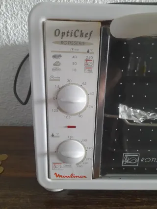 Nesesita lavar por eso precio solo 10 € NO ES MICROONDA !!! Mini horno eléctrico compacto, ideal para cocinas POLLO PIZZA pequeñas o para complementar tu cocina principal. Su diseño blanco se adapta a cualquier estilo. - Marca: Moulinex OptiChef - Función Rotisserie