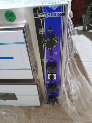 Horno para pizza, nuevo a estrenar. Está en su caja original y parece en perfectas condiciones. - Modelo de acero inoxidable. - Control de temperatura con manómetro y perillas. - Puerta con visor. - Incluye una bandeja para hornear.