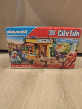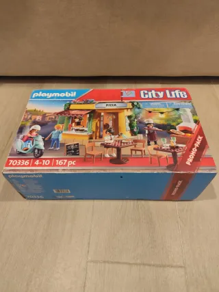 ¡Ideal para regalar o coleccionistas! 🍕🛵 Vendo el set Playmobil 70336 City Life Pizzería, edición especial Promo-Pack. El juguete está en excelente estado y completamente verificado: contiene las 167 piezas originales. El set incluye: Edificio de la Pizzería con horno de leña con luz y mostrador. 4 figuras Playmobil (incluyendo el pizzero y clientes). Moto de reparto de pizzas. Accesorios detallados: pizzas, platos, cubiertos, mesas, sillas, farolillos con luz, carteles y más. Caja original incluida. La caja ha sido abierta, pero el contenido está impecable y completo. Se ha guardado con mucho cuidado. RI 405