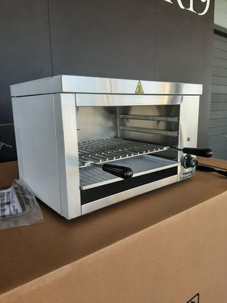 Dimensiones 76 x 36 x 47. Potencia 3,2 kW. Peso 21,1 kg. DATOS TÉCNICOS Potencia (kW) 3,2 Alimentación (V) 230V/1N/50-60Hz Altura útil (mm) 120 – 220 Dimensiones externas (cm W x D x H) 76 x 36 x 47 h Material Acero inox Dimensiones embalaje (cm W x D x H) 93 x 47 x 47 h Peso neto (Kg) 21,10 DISPONEMOS DE TODO TIPO DE MAQUINARIA PARA HOSTELERIA, HORNOS PARA PIZZA, AMASADORAS, NEVERAS, CORTA FIAMBRE, LAVAVAJILLAS, PLANCHAS ELECTRICAS Y GAS, FREIDORAS, EXTENDEDORAS DE MASA, MESAS PIZZERAS, PRENSAS, PLANETARIAS, COCINAS GAS Y ELECTRICAS, VITRINAS EXPOSITORAS, HORNOS TUNEL, PALAS PARA PIZZA, DIVISORAS, PORCIONADORAS Y BOLEADORAS,