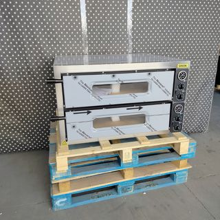 🍚👨🏾🍳 MAQUINARIA PARA ALIMENTACIÓN Y HOSTELERÍA Horno Eléctrico de acero con puerta de vidrio con 2 cámaras (doble) para la cocción de 8 pizzas de 35 cm. 🎛️ Medición 93x84x55 cm 💡🚦 Seña: Trabaja a temperatura máxima de 400ºC regulado desde el panel de mando. Consta de termómetro y luz interior. Trifásico. 🚛 Entrega 48-72 horas 📦 Portes Gratis ☘️ 684760836