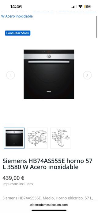 NEGOCIABLE 🔥Horno de acero inoxidable Siemens. - Capacidad de 57 L. - Potencia de 3580 W. El mejor horno sin duda👍🏼; casi no se encuentra en stock y a precios desorbitados. La vendo porque compramos uno nuevo. Pero está PERFECTO de funciones. SOLO FALTO LIMPIARLO. Funciona correctamente. Con transporte lo vendo a 250€ Se compró por 500€