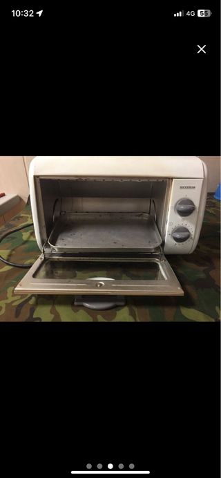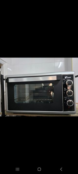 Se vende horno de sobremesa por falta de uso. Buen estado. Está limpio y desinfectado, pero necesitaria una limpieza interna en profundidad. 32 litros y 1300W. Se incluyen también dos bandejas más en color negro.