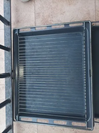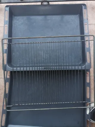 Bandeja de horno Siemens. Una rejilla, una normal y otra más honda. - Material: Metal. - Color: Gris oscuro.