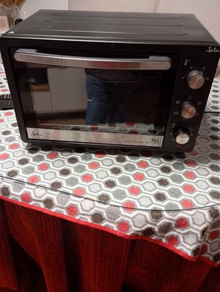 Horno eléctrico de sobremesa Jata HN945. Ideal para preparar tus comidas favoritas. Me costo 150€ - Color negro. - Puerta de cristal. - Bandeja y rejilla incluidas. 4 funciones: horno, grill, convección Luz interior Bandeja y parrilla Funciona perfectamente tiene mucha potencia . Lo unico que me paso fue que se me derramó la masa de un bizcocho y no se quitar el cristal