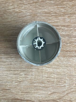 Botón selector de temperatura para horno Teka modelo HI535. Pieza de repuesto en color gris metalizado. - Diseño ergonómico. - Marcado con números y líneas de indicación.