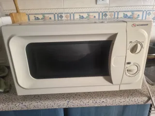 Horno microondas de la marca Schneider en color blanco. Cuenta con dos mandos giratorios para ajustar la potencia y el tiempo.con su plato - Marca: Schneider - Color: Blanco - Dos mandos giratorios