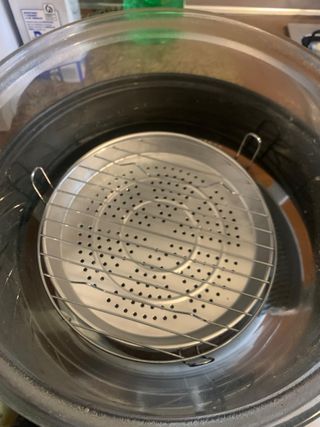 Horno vaporera en acero inoxidable, ideal para cocinar al vapor. Se encuentra en buen estado. - Incluye rejilla de acero inoxidable. - Perfecto para cocinar sanamente. - Diseño elegante y funcional.