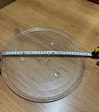 Plato de cristal para microondas con un diámetro de 28.5 cm. Diseñado para adaptarse a la mayoría de los hornos. - Material: Vidrio. - Diámetro: 28.5 cm.
