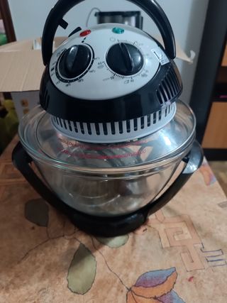 Horno eléctrico con gran capacidad y en perfecto estado. Libre de sustancias plásticas por ser íntegramente de vidrio.