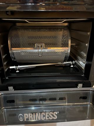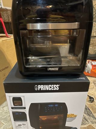 1 solo uso pero no es lo mío Freidora de aire Gourmetmaxx 9 en 1, prácticamente nueva. Es de color negro y tiene un diseño elegante. - 9 funciones en 1: freidora, horno y asador giratorio. - Capacidad para una amplia variedad de alimentos. - Fácil de limpiar. Le faltan lo pinchos pero se pueden usar cualquieras
