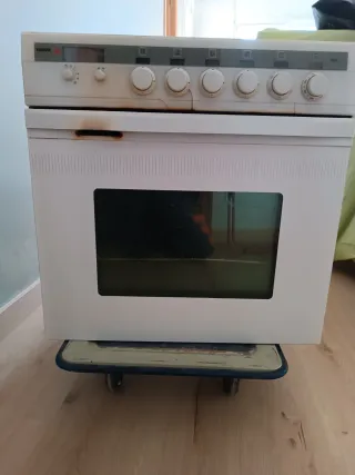 Se vende horno con fogones en color blanco. - Diseño compacto y funcional. - Ideal para cocinas de tamaño reducido.