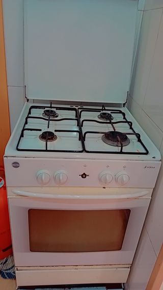 En buen estado limpia funcionando los 4 fuegos este modelo es el que va con el Horno eléctrico.