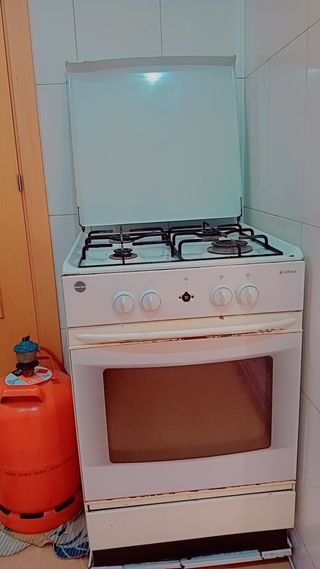 Cocina de gas Fagor con horno eléctrico, con bandeja y rejilla incluidas.