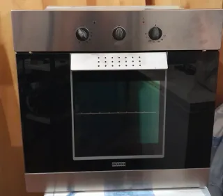 Horno eléctrico en buen estado, listo para usar en tu cocina. Funcionando bien. Marca Franke. - Diseño compacto y elegante. - Color acero inoxidable. - Puerta de cristal negro. - Incluye una rejilla. Medidas: 60x59x47cm.