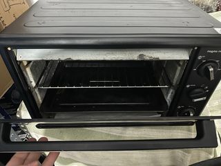 Horno eléctrico portátil marca Magma Max, ideal para tu cocina. - Diseño compacto y funcional. - Color negro. - Incluye rejilla y bandeja. - Controles de temperatura y función.