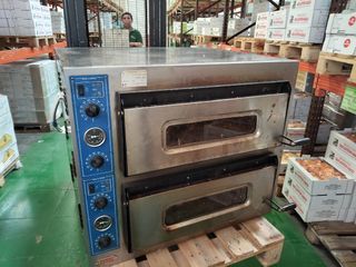Horno profesional para pizzas de doble cámara, ideal para pizzas de hasta 30cm. - Dos cámaras de cocción independientes. - Control de temperatura por cámara. - Construcción robusta en acero inoxidable. - 8,4kw. Trifasico
