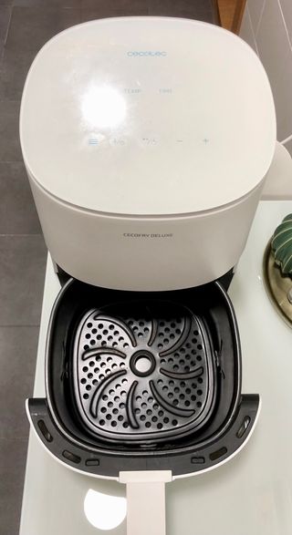 Cecotec Freidora sin Aceite 2,5 L de Aire Caliente Cecofry Deluxe Rapid Sun. 1400 W, Dietética, Función Horno, Cestillo y Rejilla aptos para Lavavajillas, hasta 200ºC, 8 Modos Funciona perfectamente. Se vende porque me han regalado otra.