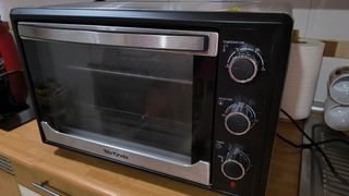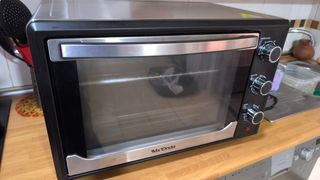 Horno eléctrico de sobremesa de la marca Ansonic. Ideal para preparar tus comidas favoritas. - Color negro y plateado. - Puerta de cristal. - Mandos giratorios para temperatura, función y tiempo. Funciona perfectamente, se vende porque se reforma la cocina