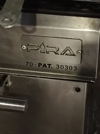 Horno de brasa profesional de la marca Pira. Capacidad para 85 comensales Producción media 60kg/h Cajón recogedor cenizas Parrilla 58,5x46,5 pinza, atizador, chimenea - Modelo: 70 - Patente: 30303 - Construcción en acero inoxidable.