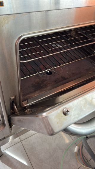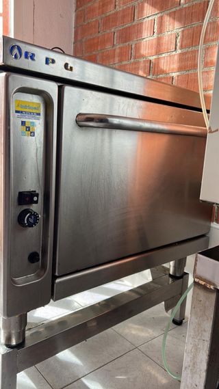 Horno industrial de la marca RPG con unas dimensiones de 80x85cm. Ideal para negocios de hostelería. - Fabricado en acero inoxidable. - Panel de control con selector de temperatura y temporizador. - Puerta con asa de acero inoxidable.