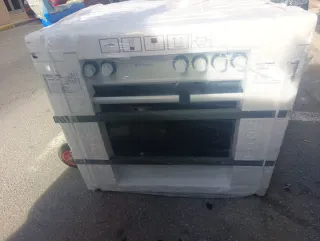 Cocina de gas butano de 90 cm de ancho, en color blanco. - Encimera de gas con 5 zonas de cocción. - Horno con grill. - Totalmente nueva. - 3 años de garantía.