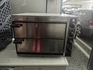 Horno profesional de doble cámara para pizzas. Ideal para negocios de hostelería. - Construcción robusta en acero inoxidable. - Dos cámaras de cocción independientes. - Mandos de control de temperatura y tiempo. No se realizan envíos. Pago en efectivo, no se aceptan bizum.